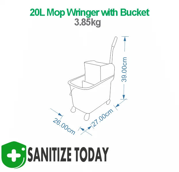 Our Mop Bucket with Wringer 20 Litre is a industrial mop trolley and wringer on castors. Suitable for any spaghetti mop.