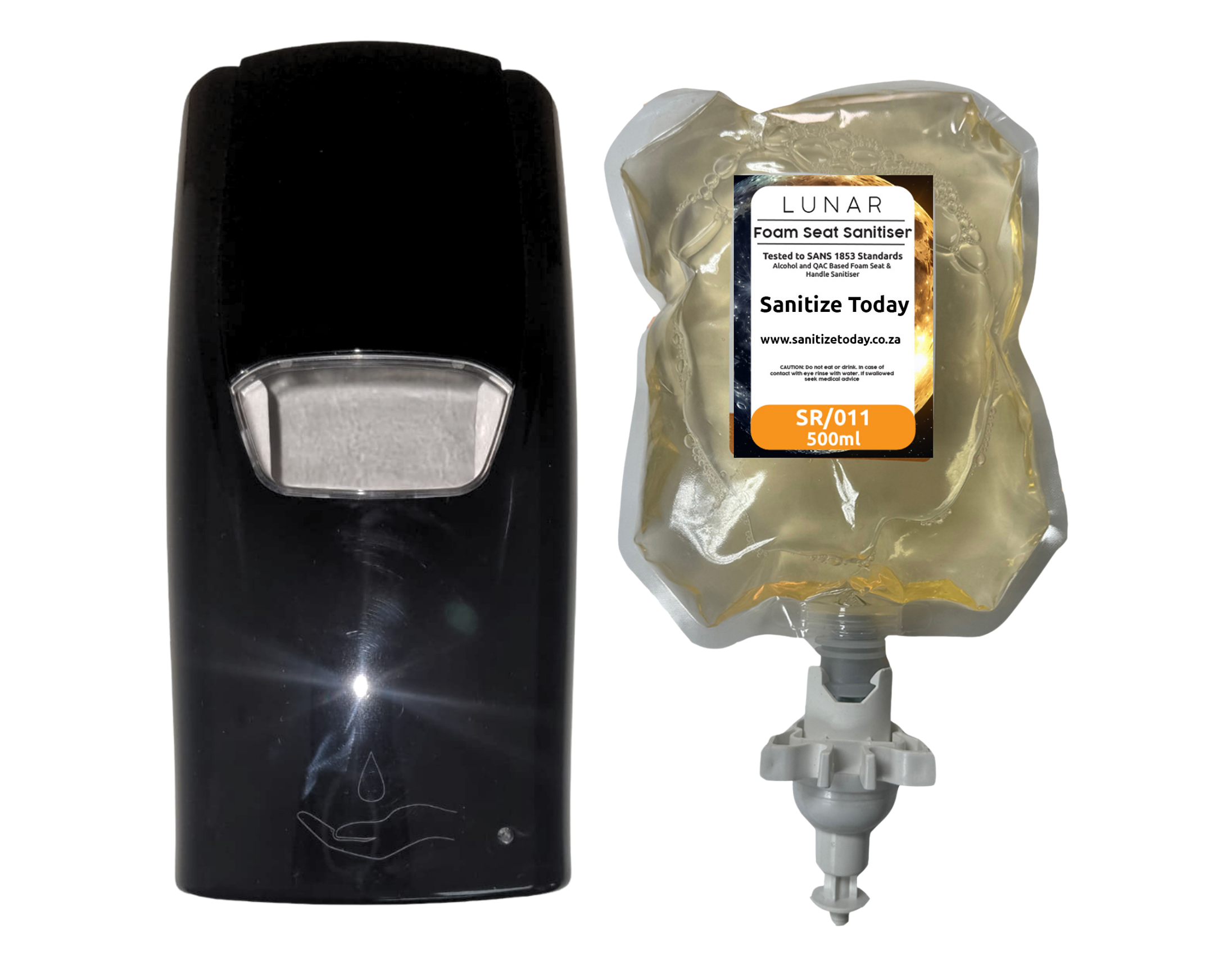 The 500ml Automatic Dispenser Sierra Black with 500ml Foam Seat Sanitiser Sachet offers a modern, hygienic solution for maintaining cleanliness in shared restroom environments. Featuring a sleek black automatic dispenser and a high-performance foam seat sanitiser, this combination is designed to improve hygiene standards while enhancing user convenience.